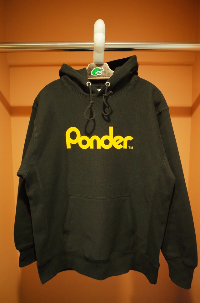 Ponder™︎ Team Hoodie body color BLACK print color SAFETY YELLOW printer マッスルPRINT 綿 75%、ポリエステル 25% 裏起毛 綿 100% 胸にチームロゴを配した、Ponder™︎のベースとなるウエアです。 プリントの色は安全ポールや道路標識の黄色をベースに調色し、デザインの配置を少し変えた今回のみの特別仕様。 (写真最後の色が実物に近いかと) 12ozのヘヴィーオンス裏起毛スウェットを採用。 ペラペラ薄すぎず、かといって着にくいくらいゴワつき過ぎないまさに丁度いい分厚さの生地。 サイドパネルのリブ仕様となっているので、型崩れしにくく、着込んでいくと良いやれ具合にも。 また洗いを繰り返すとプリントの下から生地が起毛してきて良い雰囲気に。 ドライブサイドにあたる右袖口には無事にカエル刺繍が施され、カンガルーポケットの端にピスネームが付きます。 ※イエロータイプは反射はしません。 ロゴの配置などレギュラーのものとは反転していますのでご注意下さい。この期間のみの製作になります。 Mサイズ 身丈 69cm 身幅 55cm 肩幅 50cm 袖丈 61cm サイズ L 身丈 72cm 身幅 58cm 肩幅 53cm 袖丈 62cm サイズXL 身丈 75cm 身幅 61cm 肩幅 56cm 袖丈 63cm 168cm 70kg Lサイズ着用 ※こちらは予約商品です。 記載生地よりも早く仕上げるように動きます。 ※予約商品に関しては同梱が出来ず、他の予約商品も送料が別途かかりますので、納品タイミングが同じ物を同時に予約いただいた方には二重にかかる送料差額を返金致します。