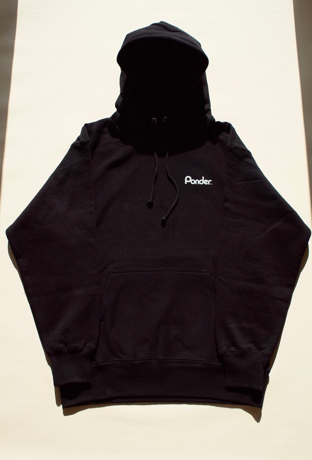 Ponder™︎ Team Hoodie body color BLACK print color OFFWHITE(Reflector) printer マッスルPRINT 綿 75%、ポリエステル 25% 裏起毛 綿 100% 胸にチームロゴを配した、Ponder™︎のベースとなるウエアです。 12ozのヘヴィーオンス裏起毛スウェットを採用。 ペラペラ薄すぎず、かといって着にくいくらいゴワつき過ぎないまさに丁度いい分厚さの生地。 サイドパネルのリブ仕様となっているので、型崩れしにくく、着込んでいくと良いやれ具合にも。 また洗いを繰り返すとプリントの下から生地が起毛してきて良い雰囲気に。 ドライブサイドにあたる右袖口には無事にカエル刺繍が施され、カンガルーポケットの端にピスネームが付きます。 背面にはナイトライドにも安心なピカッと反射のリフレクタープリントを。 ※背面のリフレクタープリントは主にアウトドアシェルなどに活用されているプリント技法を用いていますので、洗濯・アイロンがけの際は注意を払って下さい。 Mサイズ 身丈 69cm 身幅 55cm 肩幅 50cm 袖丈 61cm サイズ L 身丈 72cm 身幅 58cm 肩幅 53cm 袖丈 62cm サイズXL 身丈 75cm 身幅 61cm 肩幅 56cm 袖丈 63cm ※こちらは予約商品です。 記載期日よりも早く仕上げるように動いています。 ※予約商品に関しては同梱が出来ず、他の予約商品も送料が別途かかりますので、納品タイミングが同じ物を同時に予約いただいた方には二重にかかる送料差額を返金致します。